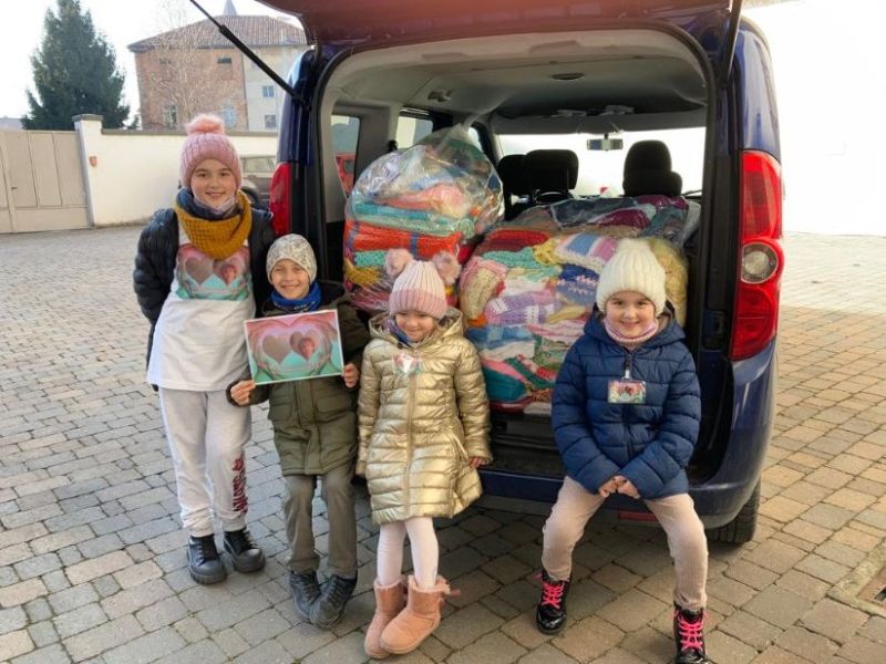 Alessandra e Paola, che risiedono nella zona di Ivrea, si occupano della consegna delle donazioni. Ed eccole, dunque, sabato a Vercelli, accompagnate dai loro figli Emma (che è anche la mascotte del gruppo), Gaia, Chloe e Cristopher, per portare al Cav una prima “tranche” di doni: oltre 60 copertine per culla, 35 per lettino, otto coperte per letto singolo e un sacco di bellissimi cappellini e calde mantelline da allattamento.