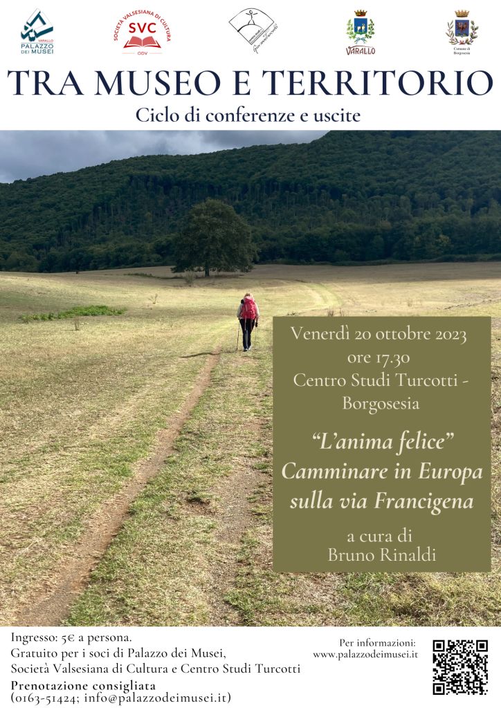 Nuovo appuntamento per la rassegna “Tra Museo e Territorio”, promossa da Palazzo dei Musei in collaborazione con Società Valsesiana di Cultura e Centro Studi Turcotti, con la conferenza dal titolo “L’anima felice”. Camminare in Europa sulla Via Francigena.