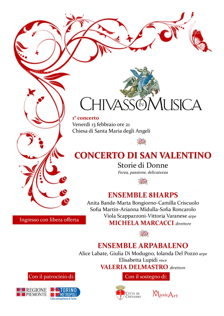 Il concerto di San Valentino si terrà venerdì 13 febbraio alle 21 nella chiesa di Santa Maria degli Angeli e sarà tutto al femminile, con la partecipazione di due ensemble.