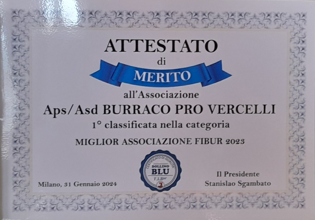 Nel corso della cerimonia, altra soddisfazione dei soci per l’attestato che il Presidente Russo ha ricevuto a Montesilvano (Pescara) dalle mani del Presidente nazionale Fibur Stanislao Sgambato: Burraco Vercelli è risultata Miglior Associazione del 2023 per numero di tornei organizzati.