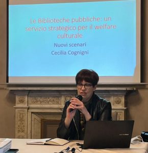 La dr.ssa Cognigni responsabile della Biblioteca Civica di Torino ha guidato il pubblico presente in un affascinante e aggiornatissimo percorso tra realtà nazionali e del nord Europa.