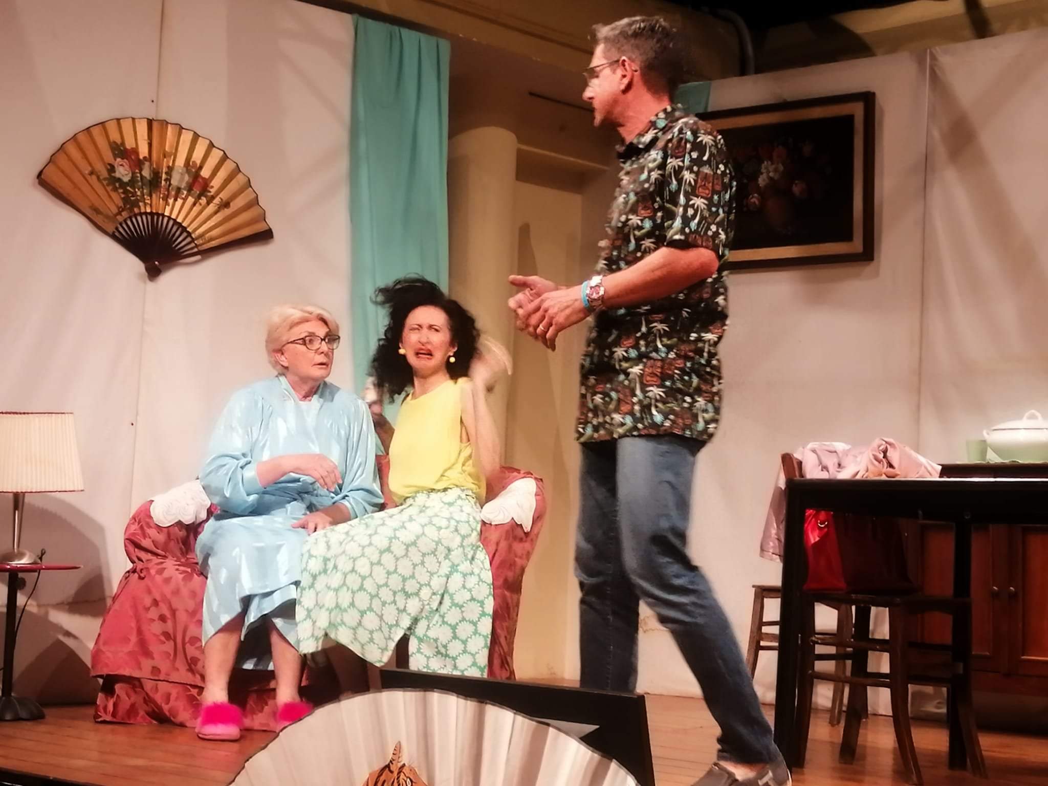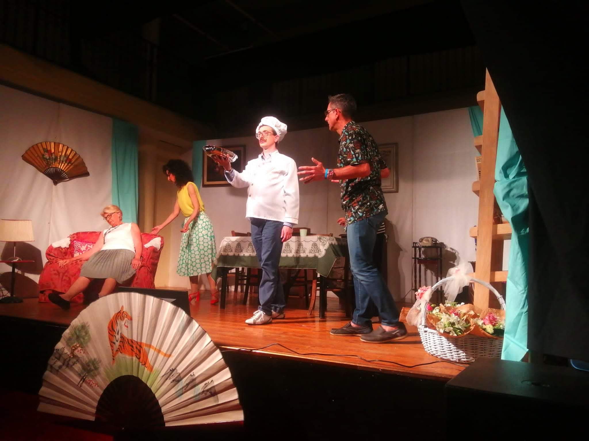 Il palco del Teatro per l’occasione è stato trasformato in un appartamento arredato all’antica, come se le novità in quella casa fossero censurate; si deve quasi percepire l’odore del vecchio. Niente televisore, solo una vecchia radio su una madia di fondo e un telefono vecchio modello a disco, posizionato da qualche parte. Un divano, a sinistra e a destra un tavolo con relative sedie, ed è qui che avviene tutto: tanti i battibecchi tra una mamma gelosa, il figlio mammone e la fidanzata, ma a movimentare il tutto è l’arrivò dello Chef da Lione con la figlia.
