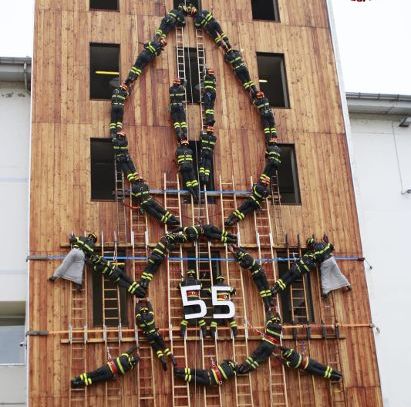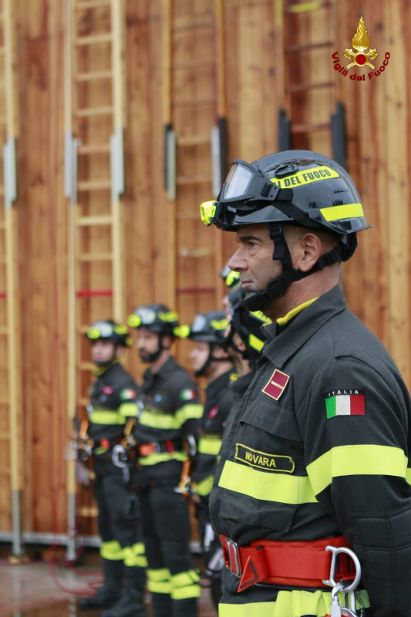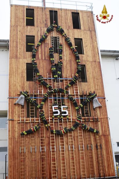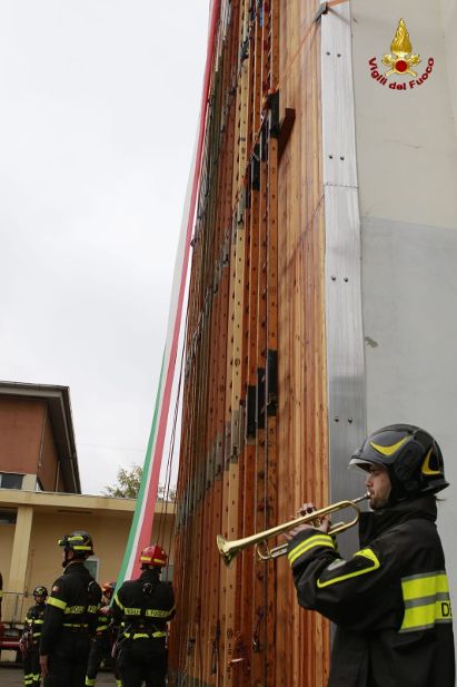 Al termine della cerimonia, il personale operativo ha svolto un breve saggio diretto a dimostrare l’abilità professionale utilizzando nove scale italiane sei scale a ganci e manovre saf, 29 vigili del fuoco si sono arrampicati sul castello di manovra per dare forma a una simbolica fiamma.