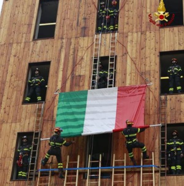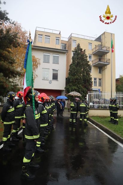 Al centro della formazione é stato issato il 55 numero storico del Comando dei Vigili del fuoco di Novara accompagnato dalla bandiera italiana e in sottofondo l’esecuzione dell’inno nazionale a seguire il silenzio suonato dal trombettista del conservatorio Brera di Novara.