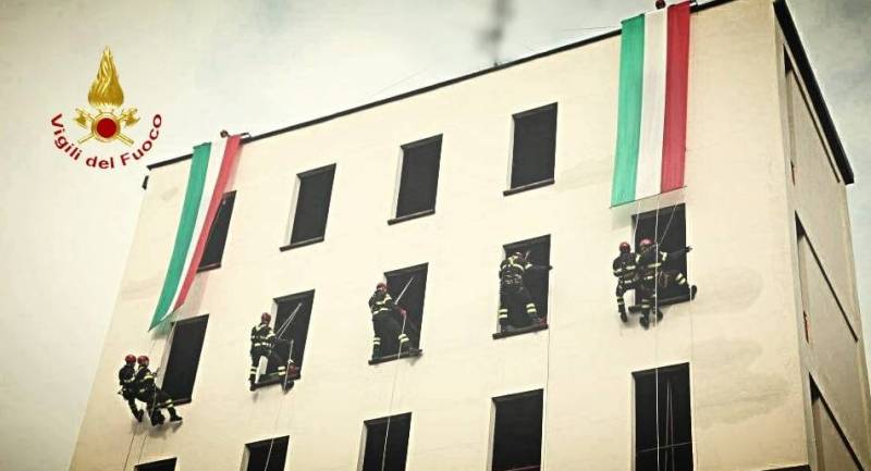 Alle ore 12.00 verrà effettuata la discesa dal castello di manovra con lo stendimento del tricolore a cura del personale del nucleo Speleo Alpino Fluviale del Comando.