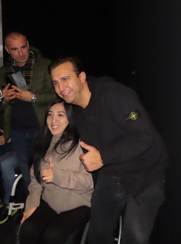 Pio si è prestato ai numerosi selfie richiesti e ha assistito alla proiezione, seduto in mezzo al pubblico entusiasta.