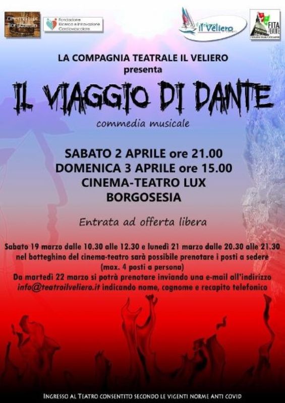 La Compagnia Teatrale Il Veliero presenta lo spettacolo “Il viaggio di Dante” che si terrà al Cinema-Teatro Lux di Borgosesia sabato 2 aprile alle ore 21.00 e domenica 3 aprile alle ore 15.00.