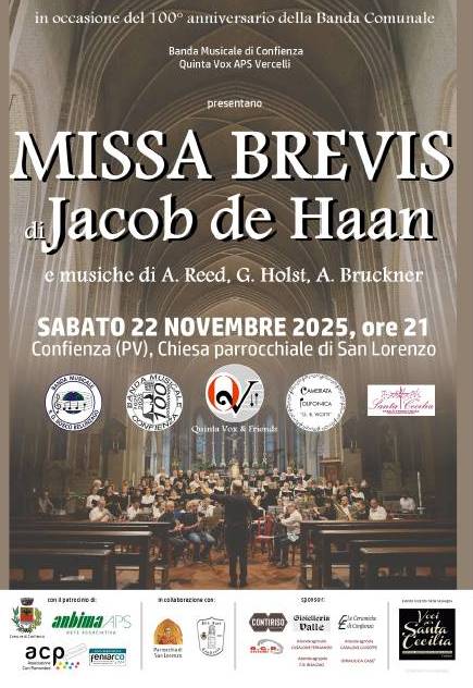 «La preparazione di questo evento – dice il Presidente della Banda Vittorio Vandone – ha impegnato coristi e bandisti per quasi due anni. In Italia, l’esecuzione della Missa Brevis di de Haan è stata finora eseguita all’Arena di Verona, al Duomo di Piacenza e a Lanciano. Si tratta davvero di un evento storico per un paese che conta 1.600 abitanti come il nostro. Ringraziamo i partners, i collaboratori e gli sponsor: una sinergia che ha prodotto un eccezionale risultato».