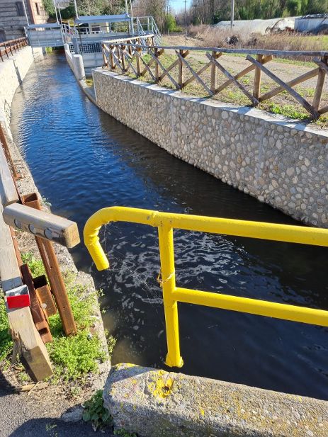 – La ringhiera gialla del parapetto del ponticello sul canale posto in via Carso, prima dell’ingresso dei magazzini comunali, risulta dissaldata (foto 1);