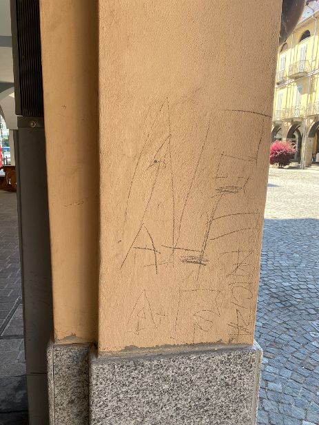 – Anche i pilastri di piazza Italia sono stati imbrattati da scritte come i muri antichi del lavatoio (foto 3 e 4);