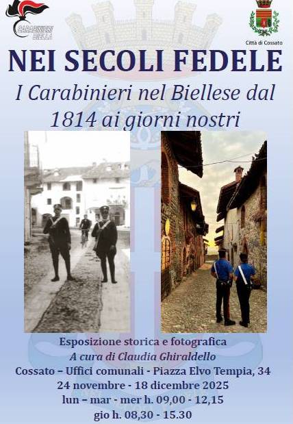 COSSATO - Mostra storica e fotografica “Nei secoli fedele: i Carabinieri nel Biellese dal 1814 ai giorni nostri”