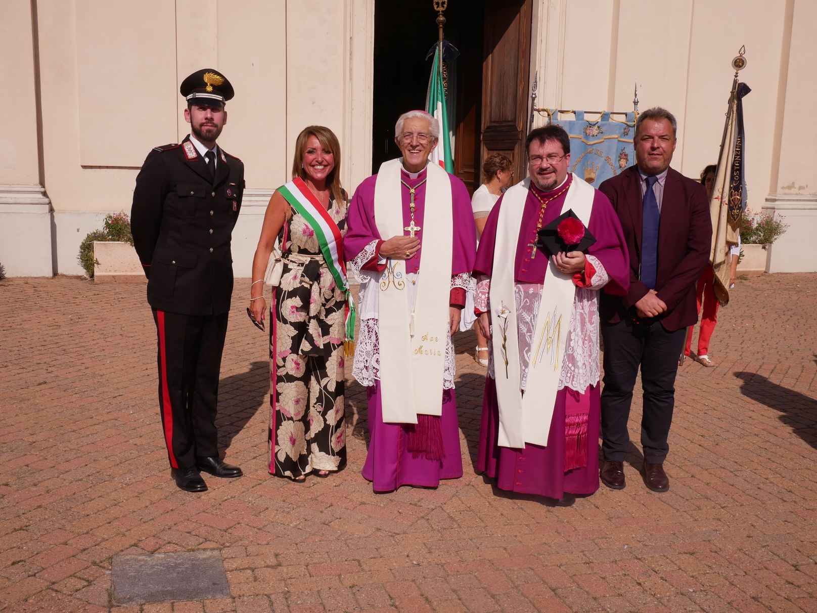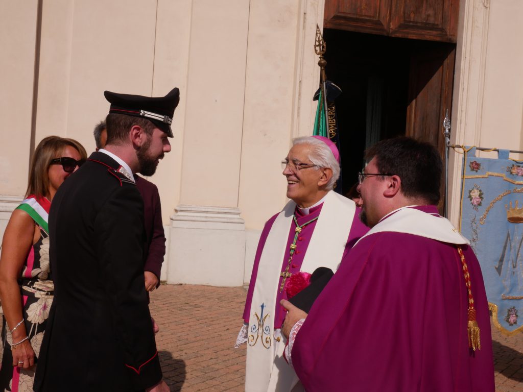 Il Vescovo Mons. Cerrato è stato accolto con affettuoso garbo dal Sindaco di Costanzana, Avv. Raffaella Oppezzo, in rappresentanza, con altre Autorità, della comunità civile.