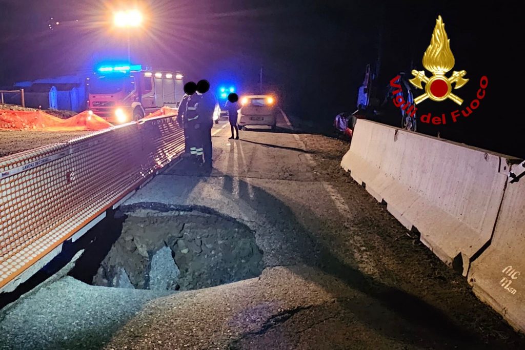 Nella serata di lunedì 1 aprile una squadra dei Vigili del Fuoco del distaccamento di Varallo Sesia è intervenuta sulla SP 9 poco prima del Comune di Cravagliana per il cedimento di una parte della sede stradale.
