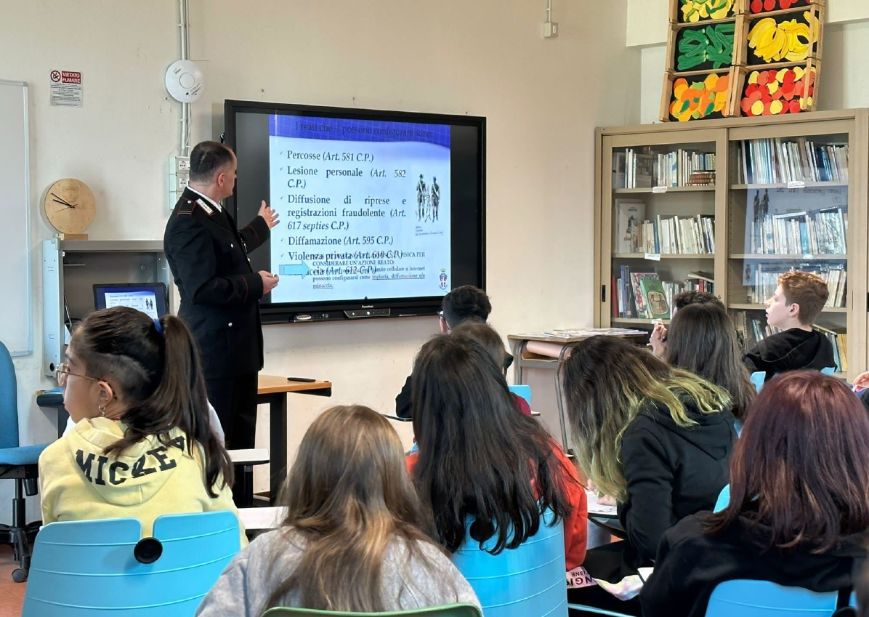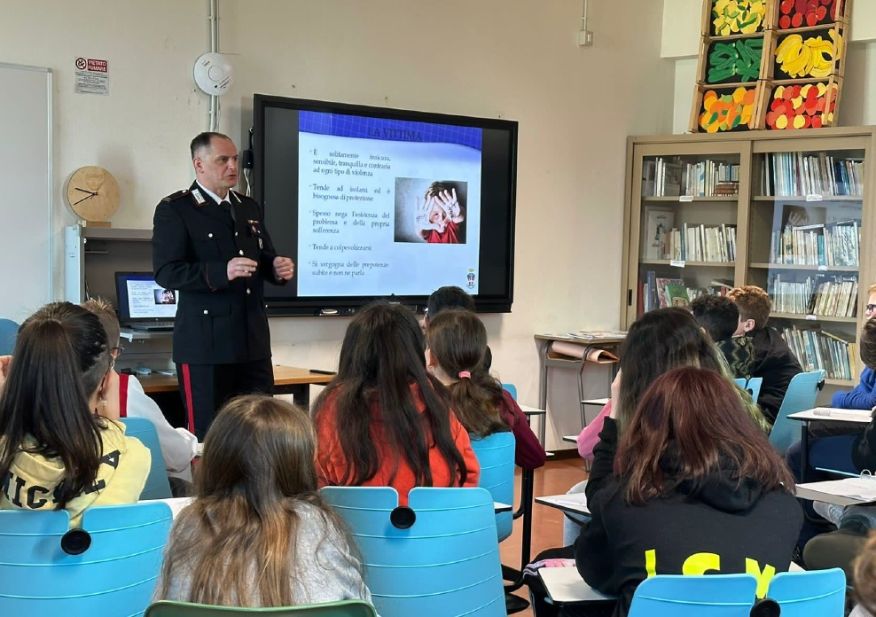 In tale contesto il Comandante della Stazione di Mongrando, Maresciallo Ordinario Marco Casavere, mercoledì 22 marzo ha incontrato gli alunni della Scuola Secondaria di primo grado di Mongrando.
