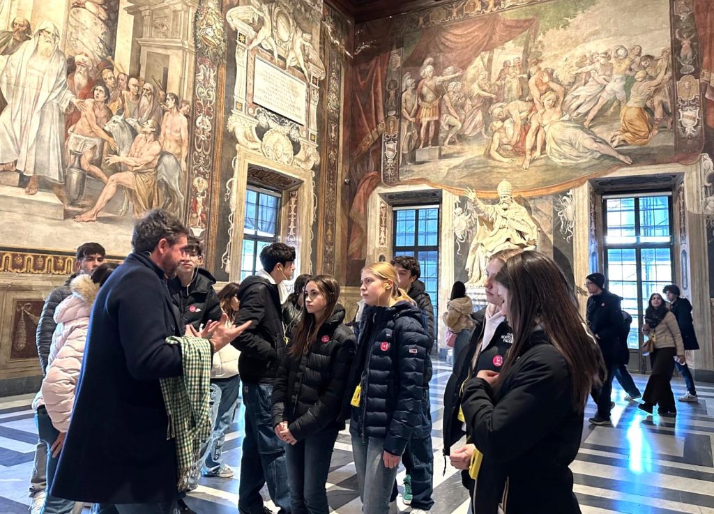 Dopo una corsa al nostro albergo ci siamo subito diretti al Quirinale, luogo di residenza del Presidente della nostra Repubblica, dove abbiamo conosciuto la nostra guida, Daniele, un ragazzo preparatissimo e molto simpatico che ci accompagnerà anche nei prossimi giorni.