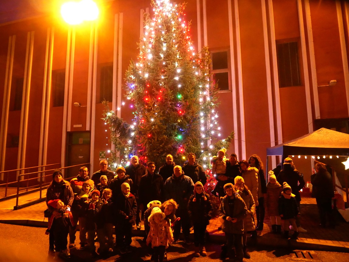 Puntuali come un orologio, si sono accese le luci del grande Albero di Natale allestito nel piazzale del Palazzetto dal Comitato del Rione Isola di Vercelli, oggi, 4 dicembre alle 17,15.