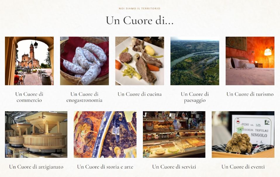 Da qui il rimando ai principali social network sui quali “Cuore del Monferrato” è attivo con aggiornamenti costanti per scoprire, ad esempio, ogni settimana, il sommario di appuntamenti che contribuiscono ad attrarre visitatori sul territorio riversandoli sulla conoscenza degli operatori locali. Presenti sul sito anche l’elenco dei comuni che formano parte del Distretto con il rimando diretto ai rispettivi siti e la lista dei partner istituzionali e delle attività private che hanno manifestato il loro interesse verso la nascita di questa realtà.
