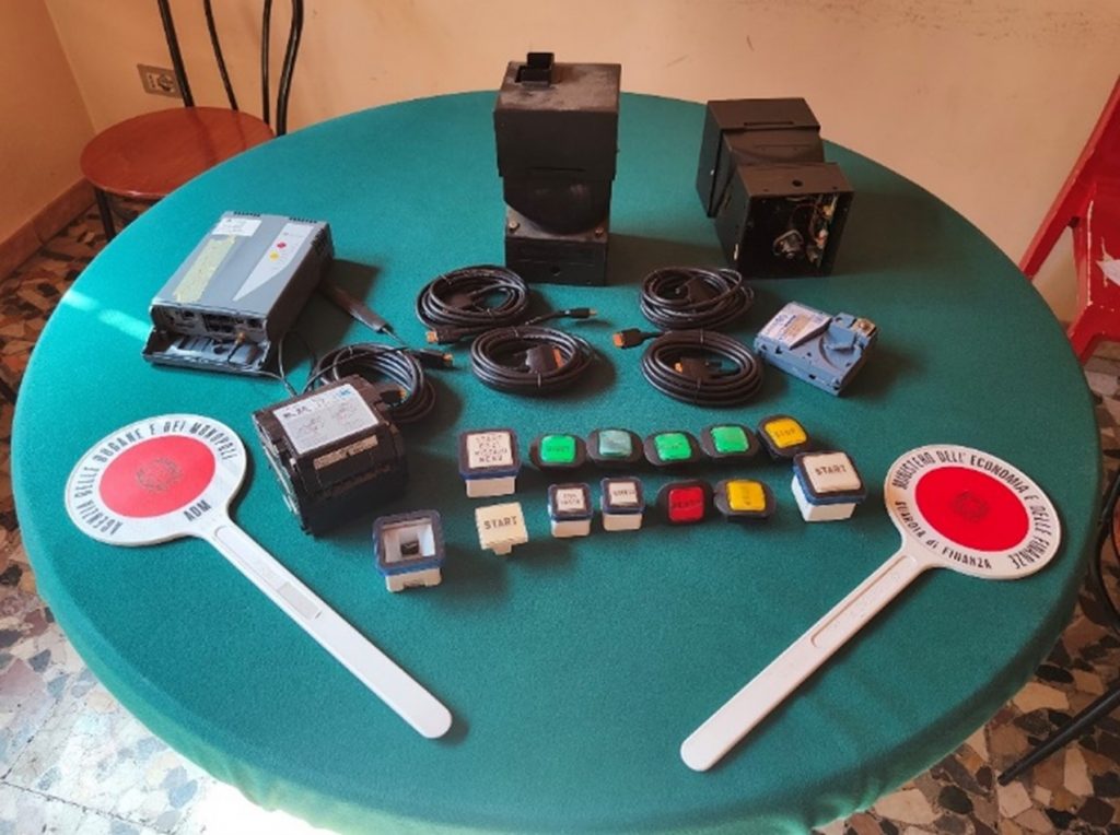 L’operazione condotta dall’Agenzia delle Dogane e dei Monopoli e dalla Guardia di Finanza ha portato al sequestro, oltre che degli apparecchi funzionanti, di diversi dispositivi in fase di assemblaggio con monitor, tasti e altre parti ancora da montare, un apparecchio cambiamonete, schede e vincite in denaro per circa 3.000 euro.
