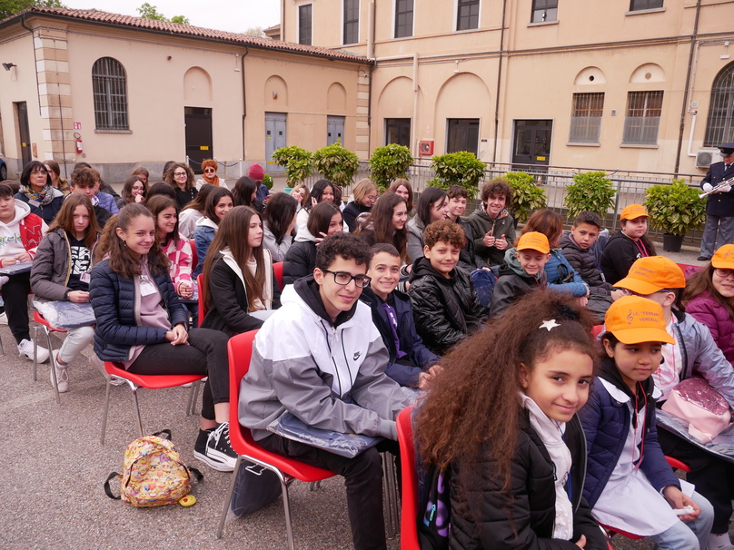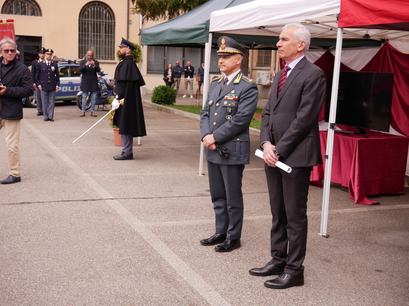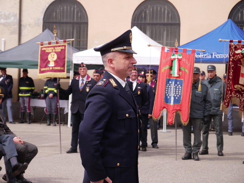 Successivamente, alle ore 11.00, sempre nel cortile della Questura di Vercelli, si è svolta la cerimonia celebrativa, con uno schieramento di uomini e donne della Polizia di Stato, l’esposizione di mezzi e di stand della Polizia Scientifica e delle Specialità e la partecipazione di una rappresentanza dell’Istituto Comprensivo “Lanino” – Scuola Secondaria di primo grado “Sandro Pertini” e dell’Istituto Comprensivo “Gaudenzio Ferrari” – Scuola “Carlo Angela” di Vercelli.