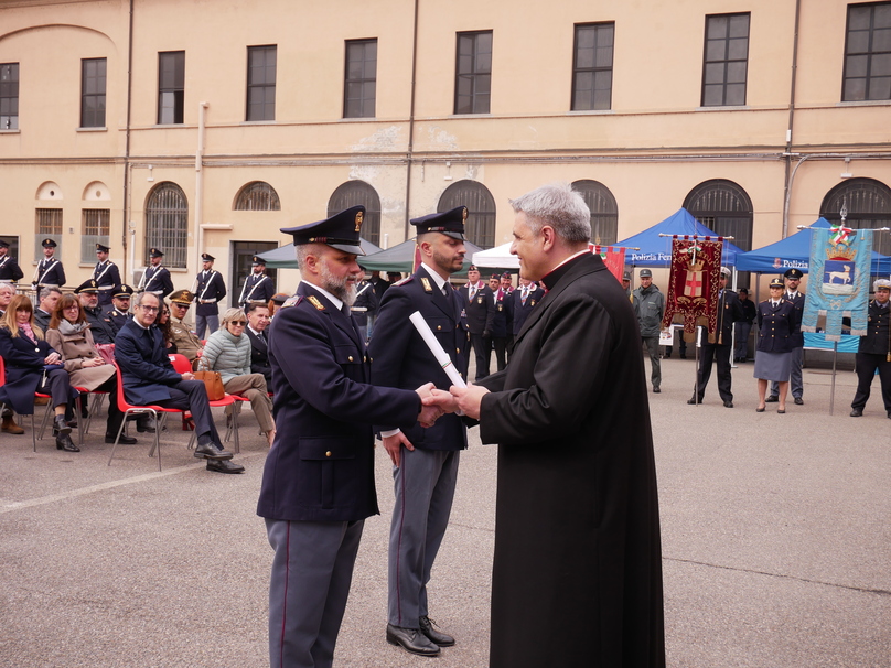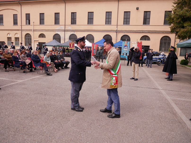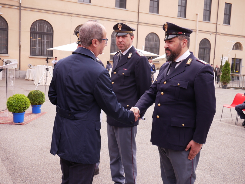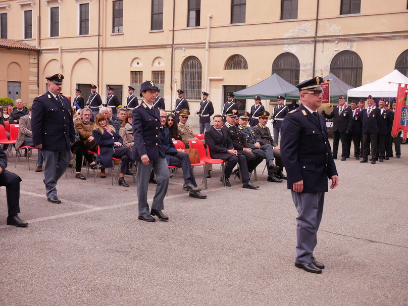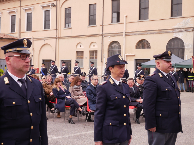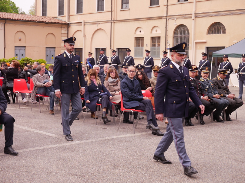 Dopo l’arrivo delle Autorità, dei familiari dei poliziotti e degli ospiti, sono stati resi gli onori al Questore, che ha aperto le celebrazioni passando in rassegna il reparto di formazione, accogliendo poi il Prefetto che ha ricevuto gli onori a sua volta.