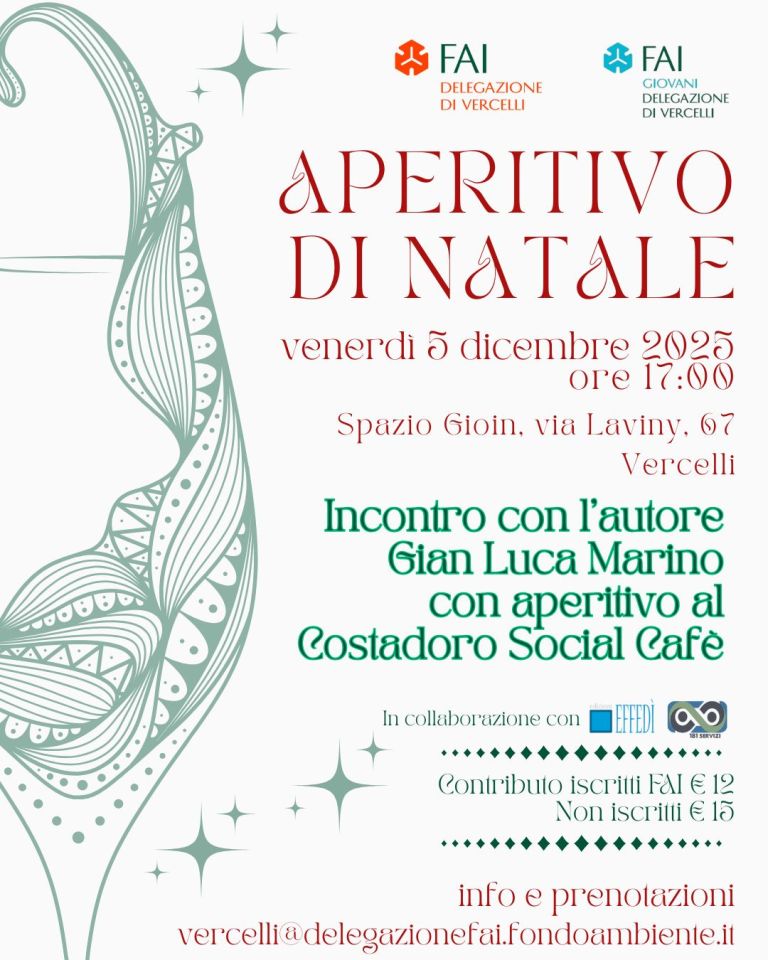 25/11/202525/11/2025 Vercelli Città FAI VERCELLI - Aperitivo natalizio con autoreOspite lo scrittore-giornalista Gian Luca Marino