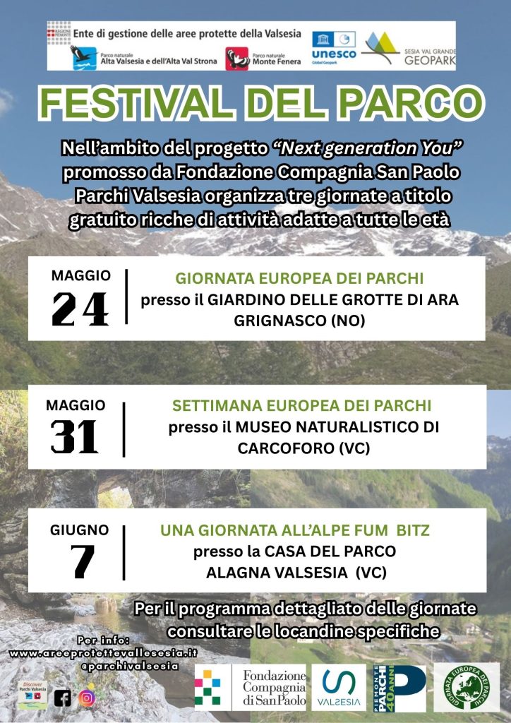 L’Ente di gestione delle aree protette della Valsesia – che dal 2012 si occupa di proteggere e valorizzare il Parco Naturale Alta Valsesia e Alta Valstrona e il Parco Naturale del Monte Fenera – celebra la Settimana Europea dei Parchi organizzando il “Festival del Parco”, evento diffuso su tre giornate alla scoperta dei suoi incantevoli territori.
