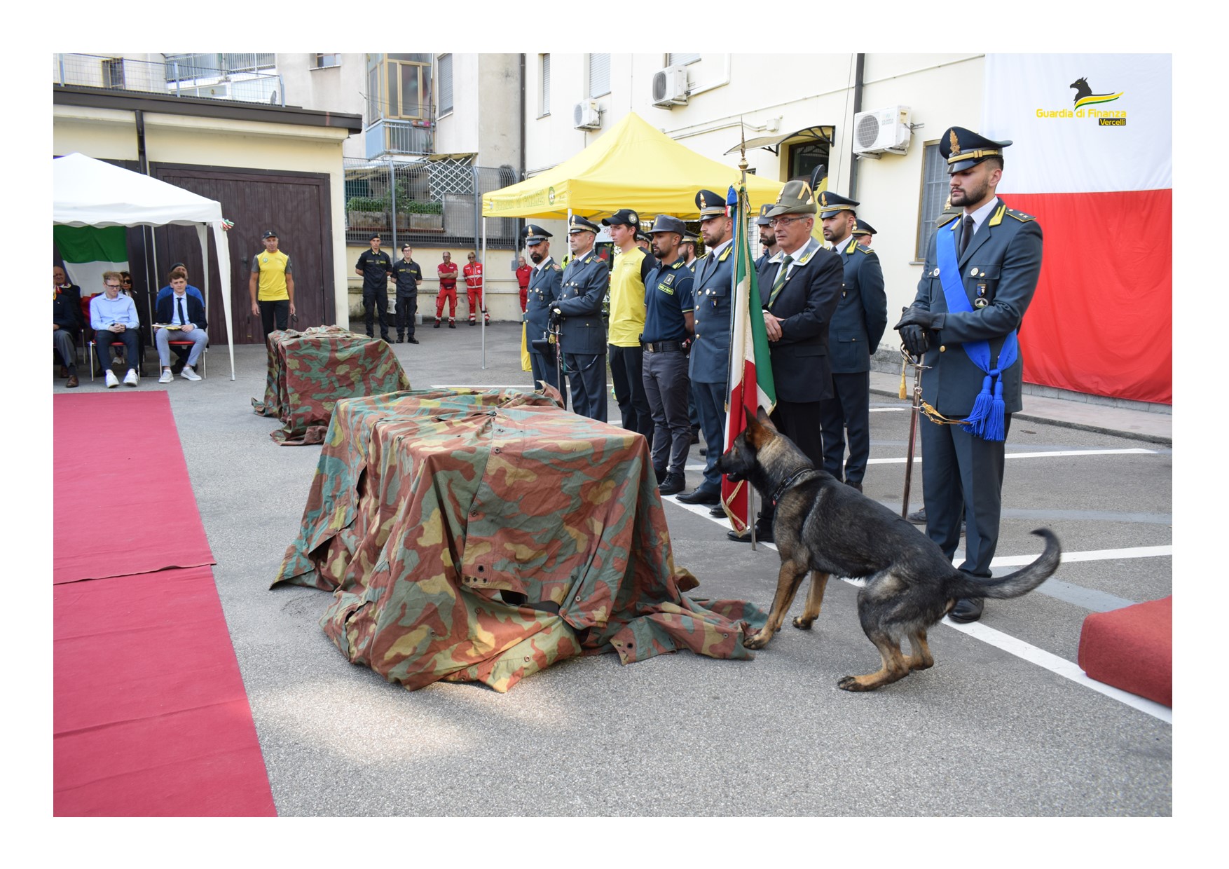 La cerimonia si è conclusa con la simulazione di ricerca e soccorso di una vittima sepolta tra le macerie da parte dell’unità cinofila in forza alla Stazione del Soccorso Alpino della Guardia di Finanza di Alagna Valsesia (VC).