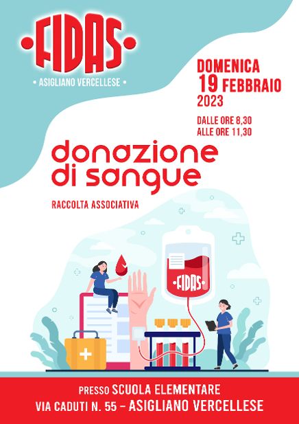 Il Gruppo Comunale Fidas adsp di Asigliano Vercellese organizza la periodica raccolta associativa di donazioni di sangue.