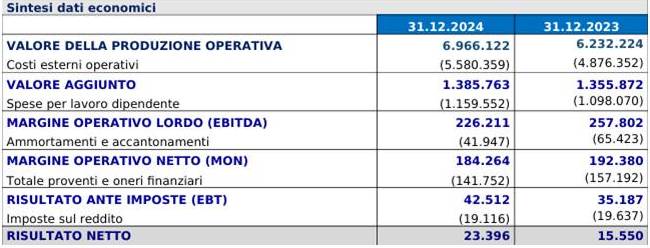 Il bilancio economico 2024 raffigura un valore della produzione che ha raggiunto i 6,97 milioni di euro.