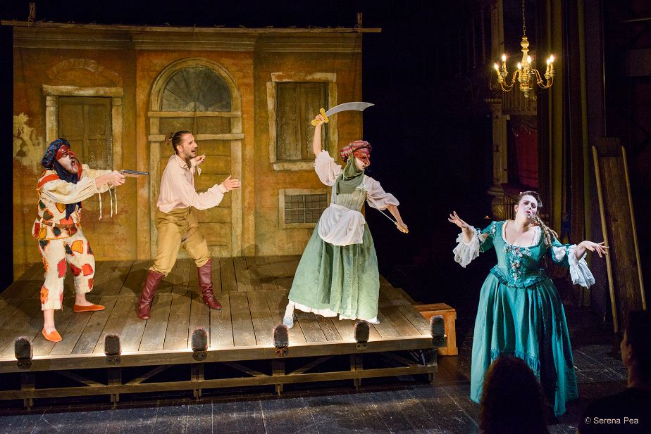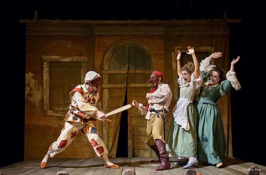 E torna la Commedia dell’Arte, con la maschera simbolo del teatro italiano, Arlecchino, ad animare uno spettacolo spumeggiante ed esilarante, recitato con varietà di lingue e dialetti, arricchito dall’uso di maschere, travestimenti, duelli, musiche, canti e pantomime.