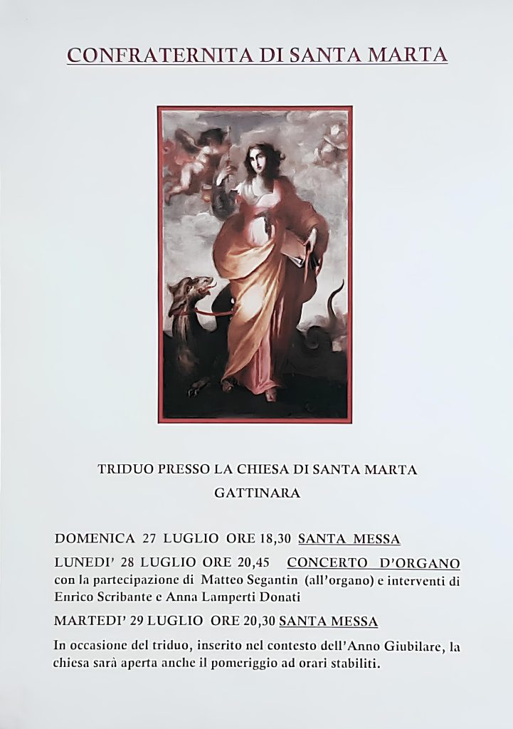 La Confraternita di Santa Marta presenta il “Triduo” presso la Chiesa di Santa Marta, situata a Gattinara in Corso Cavour angolo Via San Martino.