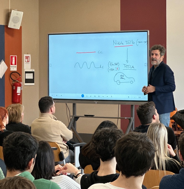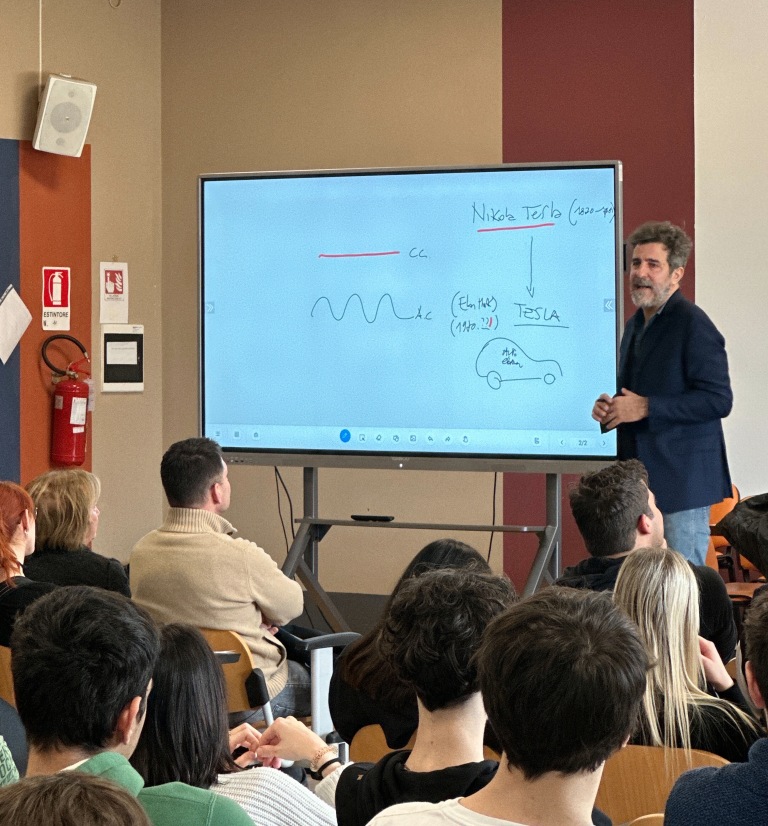 Gli alunni presenti si sono mostrati curiosi di ascoltare il dottor Temporelli che ha, quindi, trattato svariati argomenti: dal funzionamento di una chitarra elettrica, agli esperimenti sul vuoto, dal dibattito tra Tesla ed Edison, alla fisica quantistica e al dibattito sulla natura della luce.