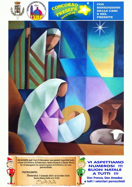 Don Franco, Don Amedeo e tutti i volontari parrocchiali invitano a partecipare al Concorso Presepi ed attendono numerose adesioni, per condividere questa iniziativa, che rende ancor più sentita la solennità del Santo Natale