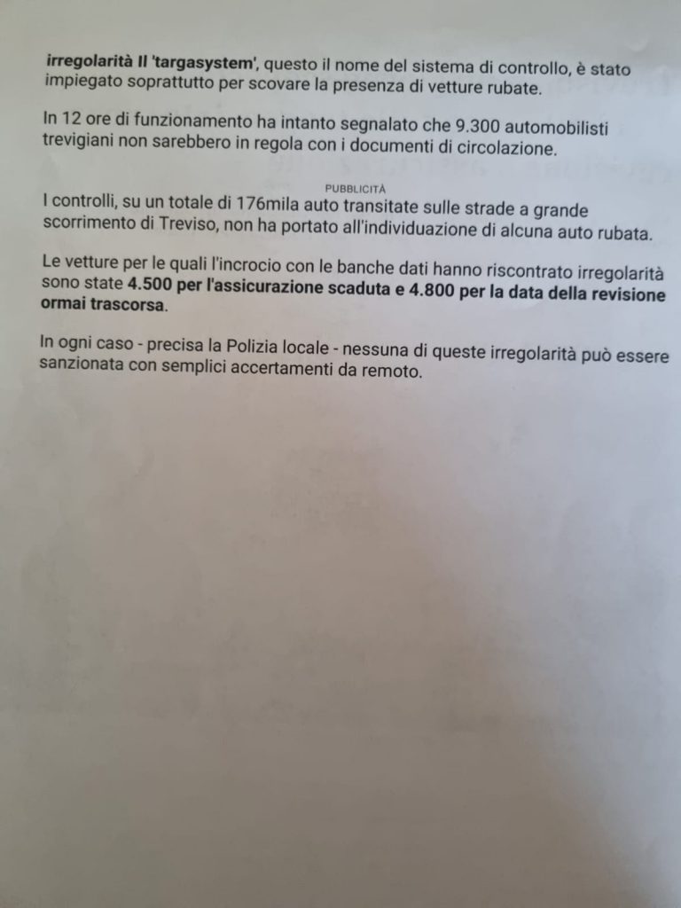– Abbiamo ricevuto più di una segnalazione con dubbi sorti circa le notizie apparse in internet, anche se riguardanti altre Province, in merito alla gestione del sistema “targasystem”, ovvero del servizio di verifica della regolarità delle auto circolanti sul territorio.