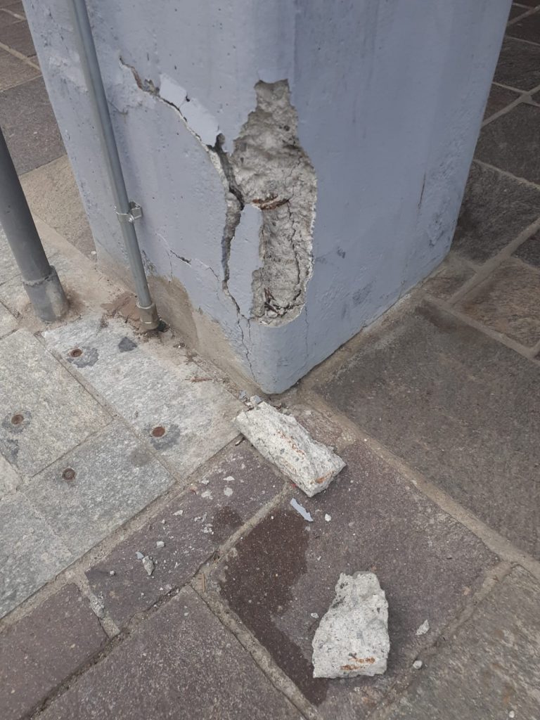 Nelle foto numero 6, 7, 8 e 9, si possono vedere il danneggiamento di un edificio comunale e le criticità sul suolo pubblico.