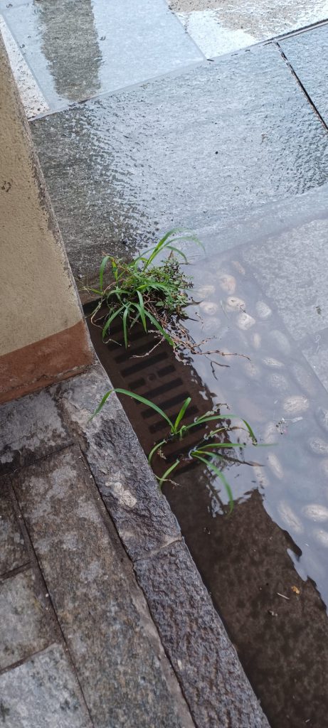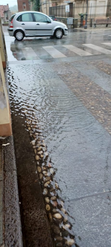 In corso Cavour, lato portico angolo via XX Giugno, nonostante sia stato fatto lo spurgo del tombino visibile nella foto n° 5, persiste il mancato deflusso delle acque meteoriche con conseguente allagamento della sede stradale (foto n° 6);