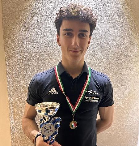 Già dall’anno scorso Andrea aveva disputato il Campionato di serie A1 con la Ginnastica Salerno per le sue capacità soprattutto negli attrezzi corpo libero, cavallo con maniglie e anelli, ed è proprio in questi attrezzi che domenica 8 ottobre Andrea si è distinto conquistando il titolo di Campione regionale al cavallo con maniglie e vice campione regionale agli anelli e al corpo libero.