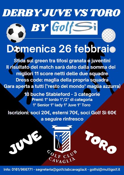 Domenica 26 febbraio si disputerà infatti il “Derby Juve vs Toro by Golf Sì” sfida sul green tra tifosi granata e juventini a due giorni dal match calcistico di serie A.