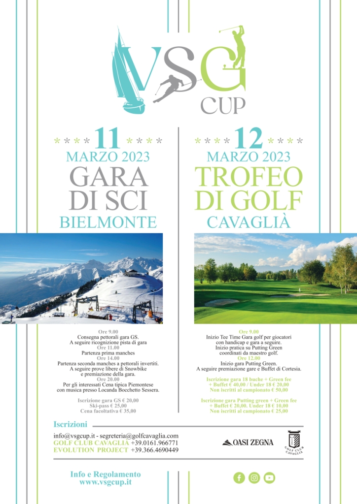 Domenica 12 marzo gara di golf al Golf Club Cavaglià aperta a tutti con in palio ad estrazione tra tutti i partecipanti un paio di sci Rossignol con attacchi.