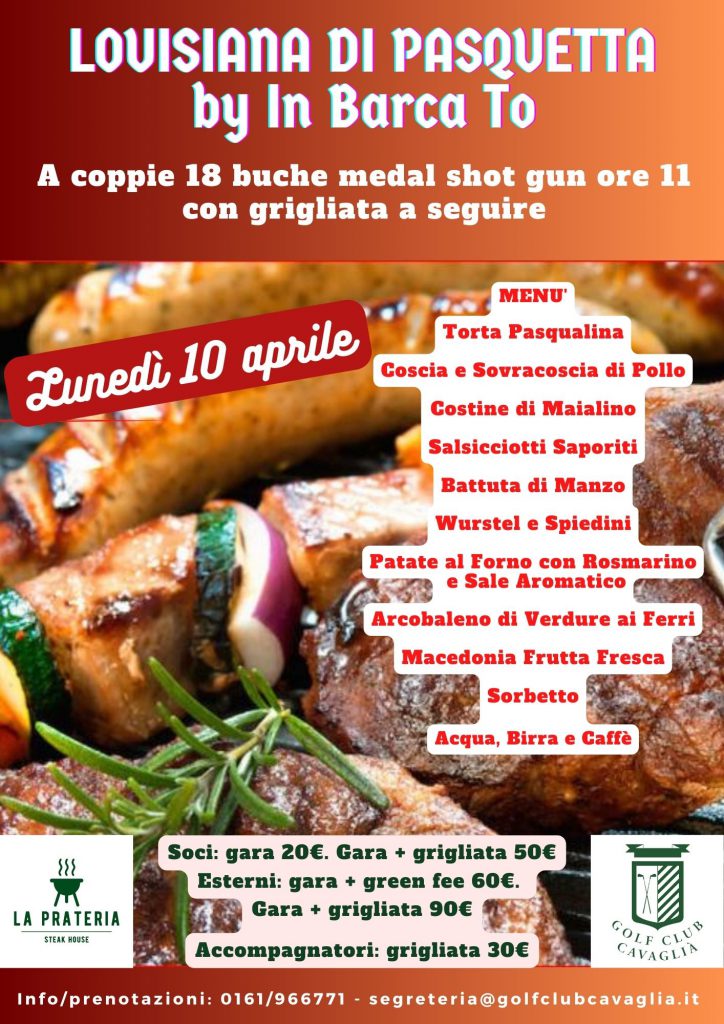 Lunedì 11 aprile ritorna la classica Louisiana di Pasquetta by InBarcaTo con la classica grigliata a seguire (shot gun ore 11 – 18 buche a coppie louisiana medal – Iscrizioni soci: 20€, gara + grigliata 50€.