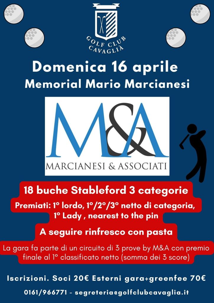 Domenica 16 aprile si giocherà il Memorial Mario Marcianesi by M&A (18 buche Stableford 3 categorie – iscrizione gara soci 20€, esterni gara+green fee 70€) con in palio bottiglie pregiate per i migliori.