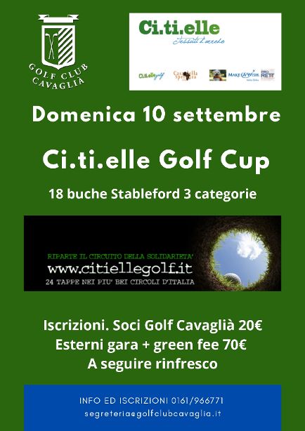 Domenica 10 settembre spazio alla solidarietà con il ritorno del torneo Ci.Ti.Elle Golf Cup (18 buche, Stableford, 3 categorie – iscrizione gara soci 20€, esterni gara e green fee 70€).