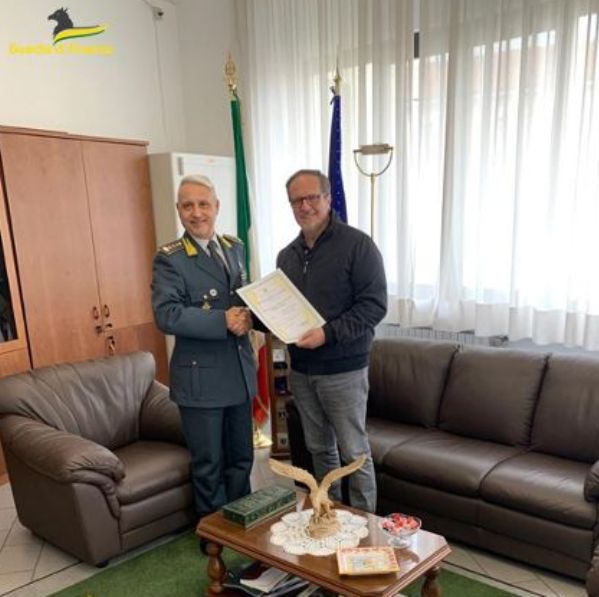 Nella giornata di ieri, lunedì 24 ottobre, il Comandante Provinciale della Guardia di Finanza, Col. t. ISSMI Ciro Natale, gli Ufficiali e i Colleghi hanno salutato il Luogotenente “C.S.” Agostino Giacomantonio che, al termine di quarant’anni di servizio nel Corpo, è stato posto in congedo al compimento dei sessant’anni di età.