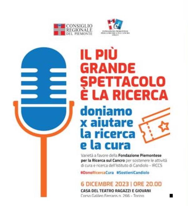 Il più grande spettacolo è la ricerca, questo lo slogan della serata benefica che il Consiglio regionale del Piemonte e la Fondazione piemontese per la Ricerca contro il cancro, hanno organizzato al Teatro Ragazzi di Torino, Corso Galileo Ferraris, 266 – Torino il prossimo 6 dicembre alle ore 20.00.