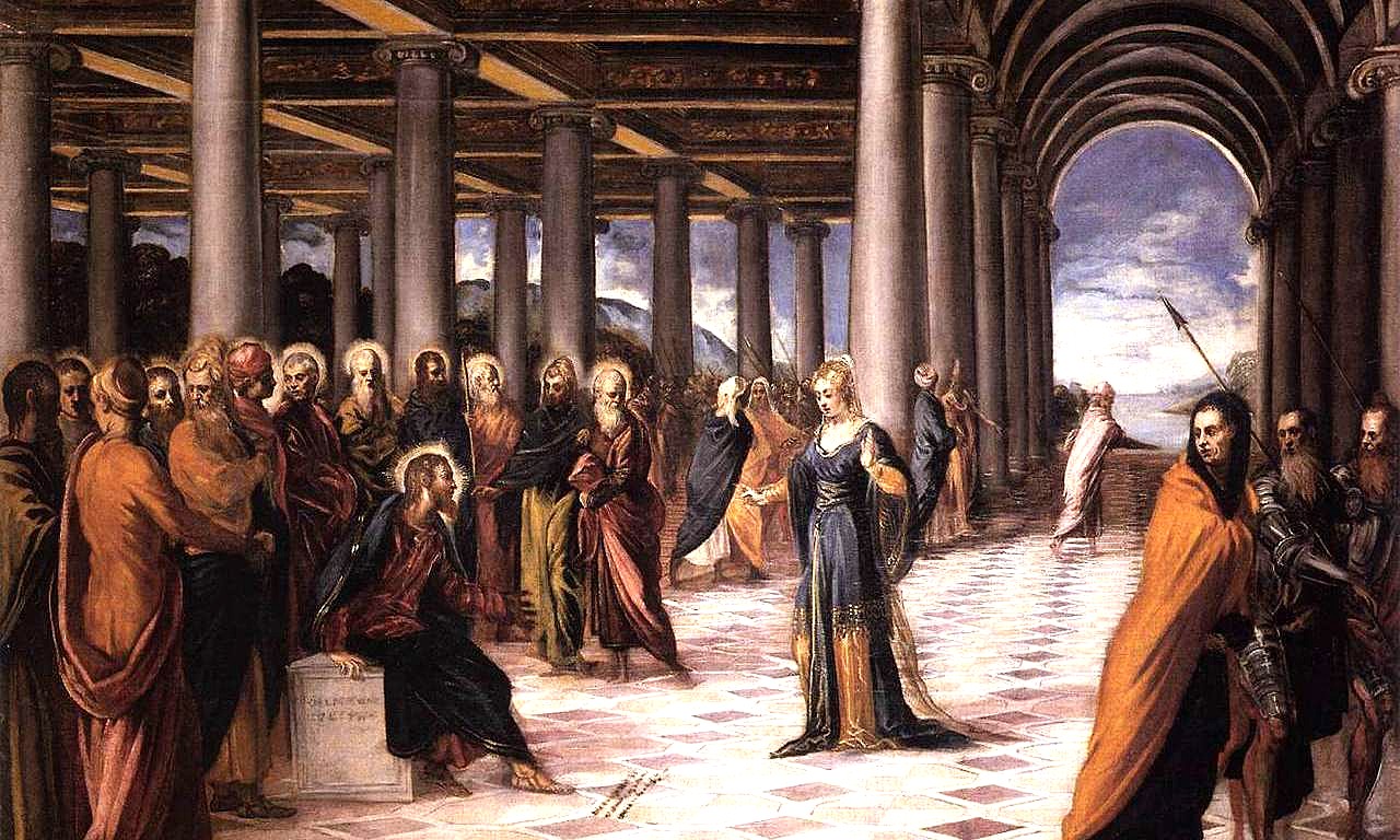 Allora gli scribi e i farisei gli condussero una donna sorpresa in adulterio, la posero in mezzo e gli dissero: «Maestro, questa donna è stata sorpresa in flagrante adulterio. Ora Mosè, nella Legge, ci ha comandato di lapidare donne come questa. Tu che ne dici?». Dicevano questo per metterlo alla prova e per avere motivo di accusarlo.