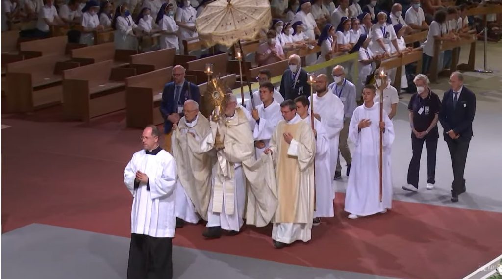 Elisabetta fu colmata di Spirito Santo ed esclamò a gran voce: «Benedetta tu fra le donne e benedetto il frutto del tuo grembo! A che cosa devo che la madre del mio Signore venga da me? Ecco, appena il tuo saluto è giunto ai miei orecchi, il bambino ha sussultato di gioia nel mio grembo. E beata colei che ha creduto nell’adempimento di ciò che il Signore le ha detto».