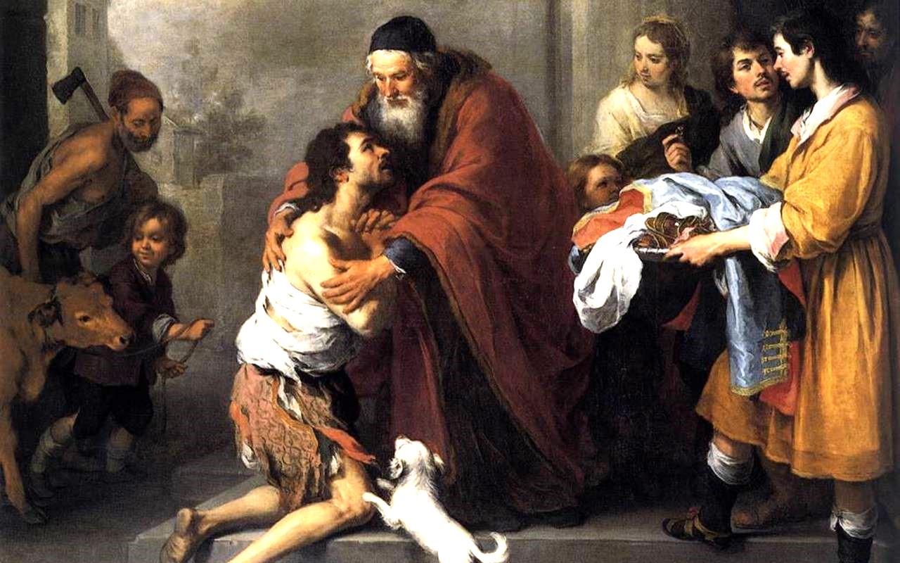 Quando era ancora lontano, suo padre lo vide, ebbe compassione, gli corse incontro, gli si gettò al collo e lo baciò. Il figlio gli disse: “Padre, ho peccato verso il Cielo e davanti a te; non sono più degno di essere chiamato tuo figlio”. Ma il padre disse ai servi: “Presto, portate qui il vestito più bello e fateglielo indossare, mettetegli l’anello al dito e i sandali ai piedi. Prendete il vitello grasso, ammazzatelo, mangiamo e facciamo festa, perché questo mio figlio era morto ed è tornato in vita, era perduto ed è stato ritrovato”. E cominciarono a far festa.