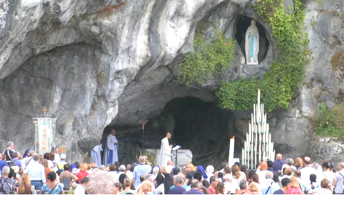 L’illustrazione di questa settimana riprende il pellegrinaggio interdiocesano Oftal a Lourdes – Sabato 13 agosto ore 18 Santo Rosario alla Grotta.