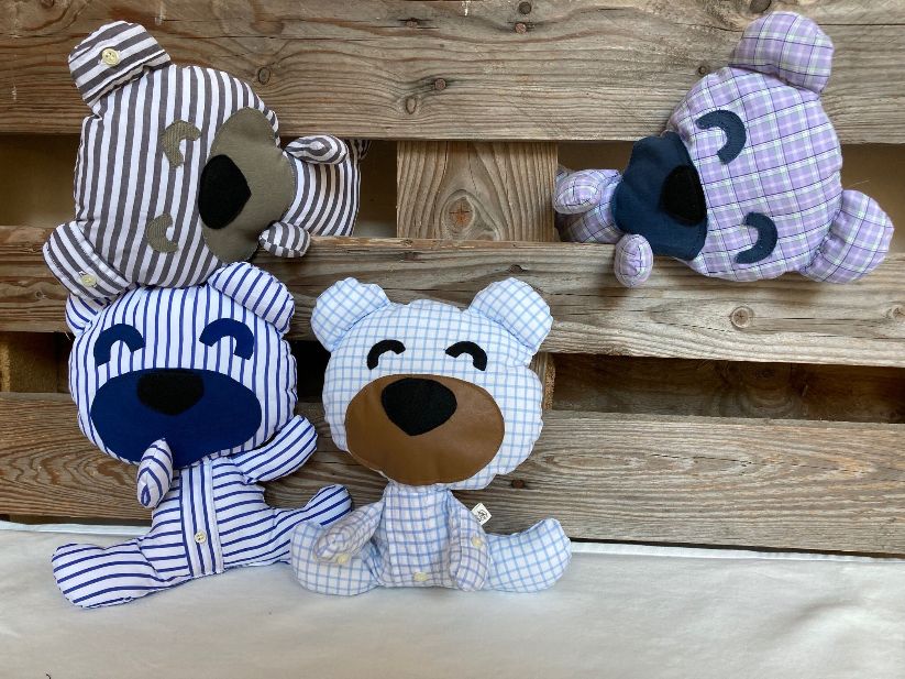 Ogni orsetto è stato creato con camicie e altri tessuti di recupero che ci sono stati donati nei mesi scorsi dai cittadini.