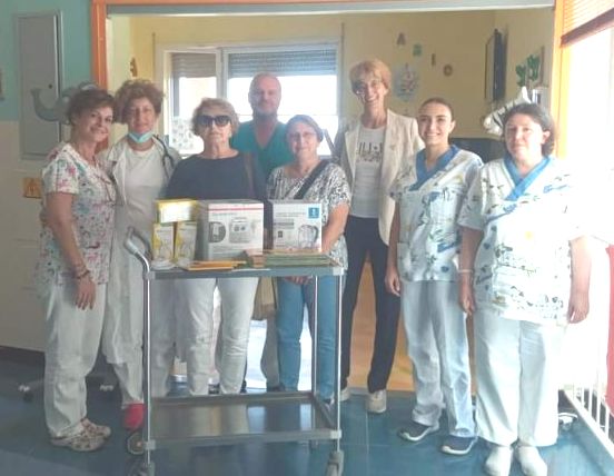 A loro è stato consegnato materiale utile per la cura dei bambini ricoverati nel reparto: alcuni termometri, un bollitore, un apparecchio per Aerosol e diversi distanziatori per terapia con puff.